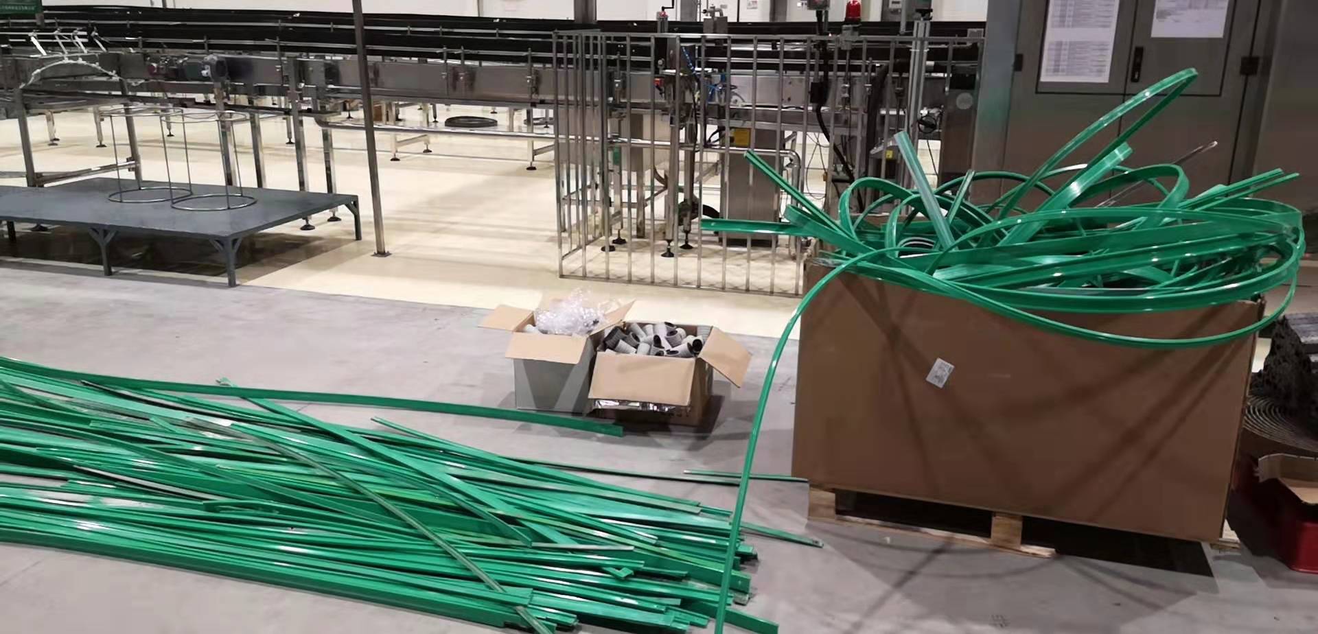 農(nóng)夫山泉漠河工廠有一條其它 工廠搬遷過(guò)來(lái)的生產(chǎn)線,線上的產(chǎn)品較為陳舊,品種過(guò)于混雜,包括鏈板、耐磨條、彎道 、鏈輪、托輪等多數(shù)來(lái)自不同的廠家和品牌,屬于七拼八湊起來(lái)的設(shè)備。這樣的設(shè)備難以正常用于生產(chǎn),并且不利于日常維護(hù),潤(rùn)滑液消耗也很大。